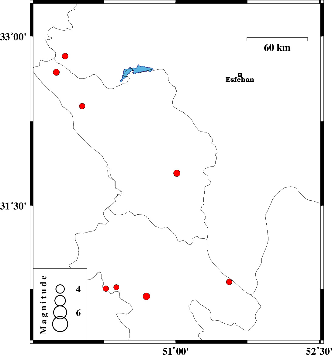 | 2017/04/30 | 01:54:20.5 | 06:24:20.5 | 32.825 | 49.847 | 15 | ML:2.8 | Esfahan Province, 28 km South-West of Fereydunshahr | ||