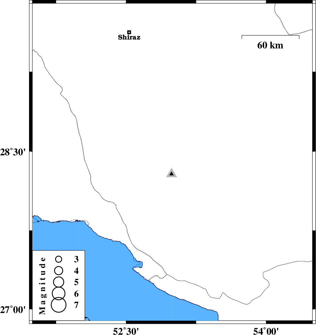 | 2017/05/17 | 14:25:26.6 | 18:55:26.6 | 28.39 | 52.996 | 15 | ML:2.6 | Fars Province, 9 km of Qir va Karzin |