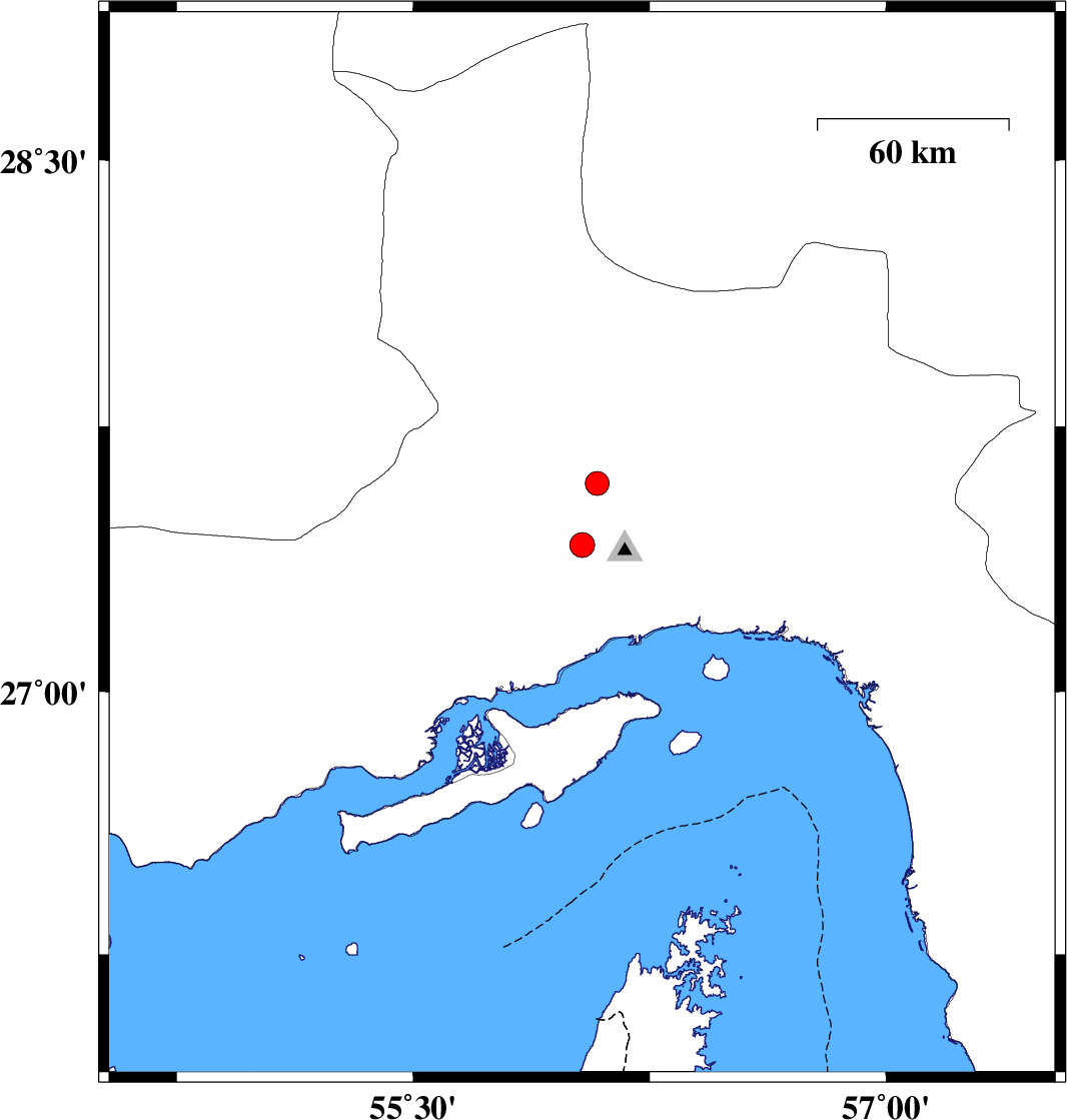 | 2017/05/23 | 01:31:29.3 | 06:01:29.3 | 27.415 | 56.036 | 14 | ML:3.5 | Hormozgan Province, 35 km North-West of Bandar-e abbas | ||