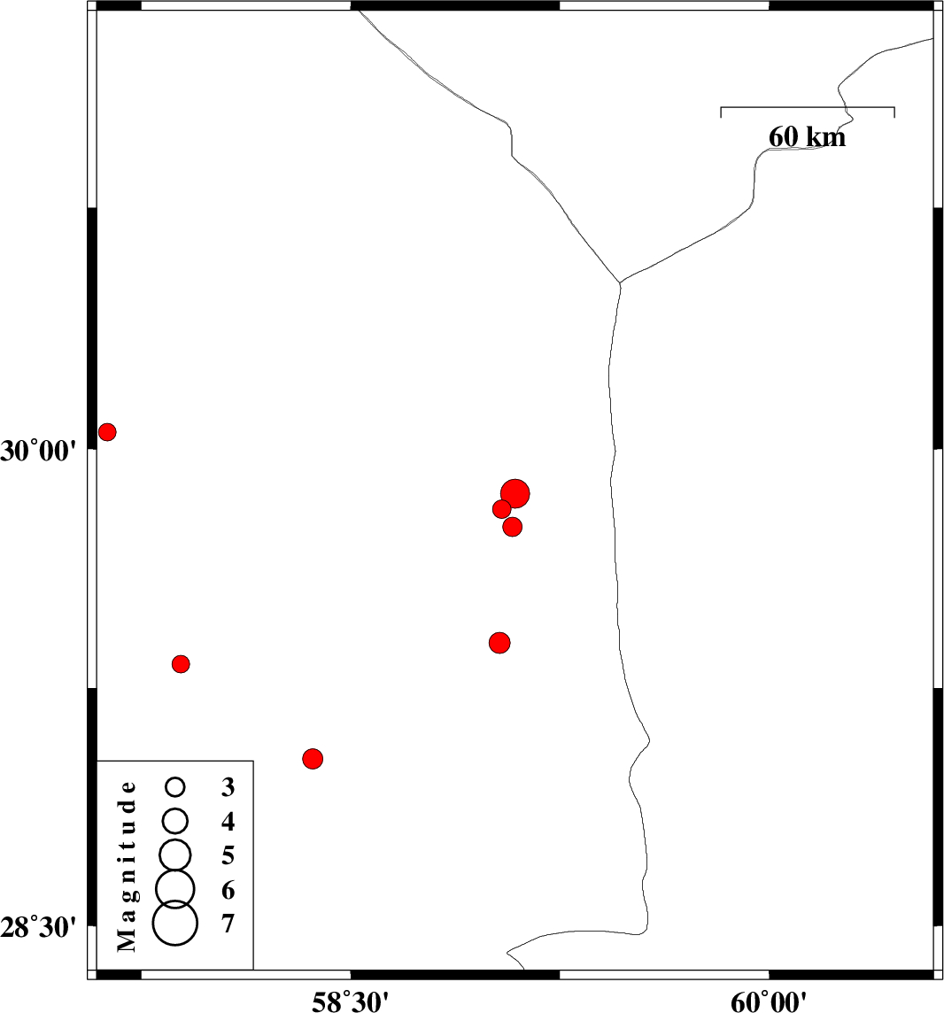 | 2017/06/10 | 04:07:03.4 | 08:37:03.4 | 29.86 | 59.089 | 14 | ML:4.7 | Kerman Province, 110 km North-East of Bam | ||