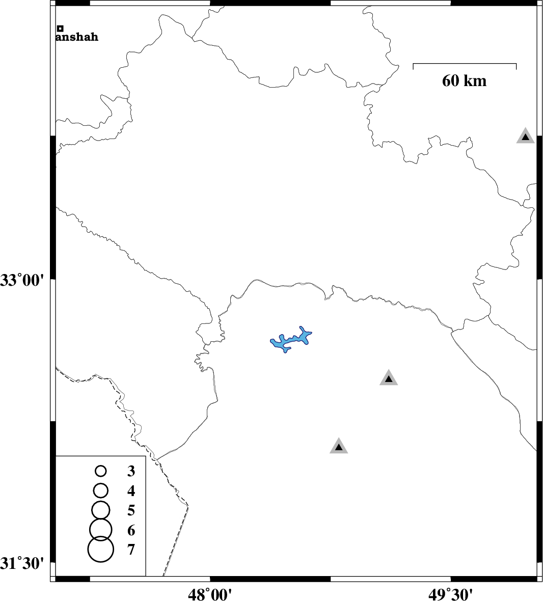 | 2017/06/15 | 18:07:51.5 | 22:37:51.5 | 32.925 | 48.536 | 14 | ML:2.6 | Khoozestan Province, 54 km North-East of Andimeshk |