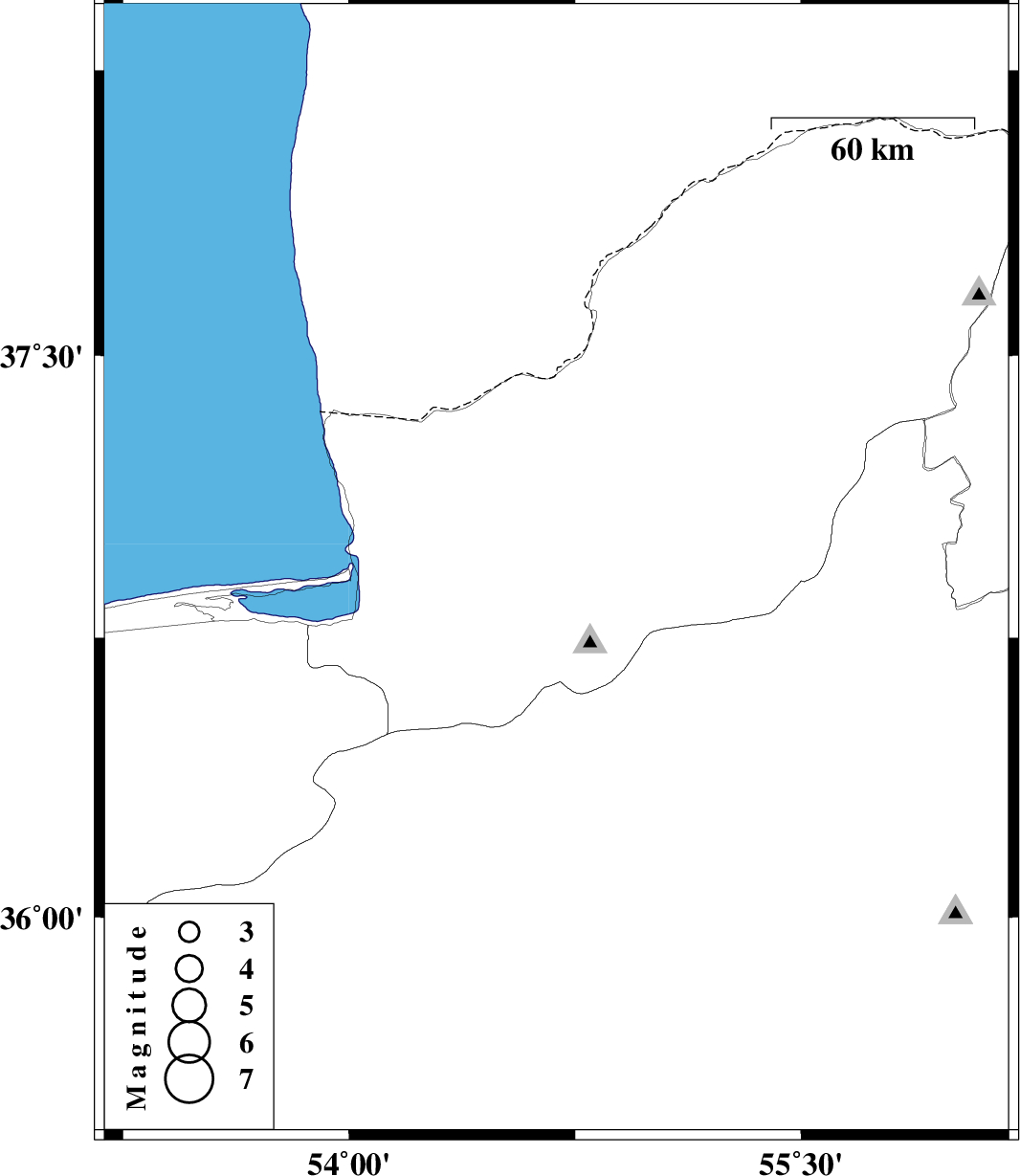 | 2017/06/18 | 23:45:41.5 | 04:15:41.5 | 36.925 | 54.688 | 18 | ML:2.8 | Golestan Province, 16 km -West of Ali Abad |