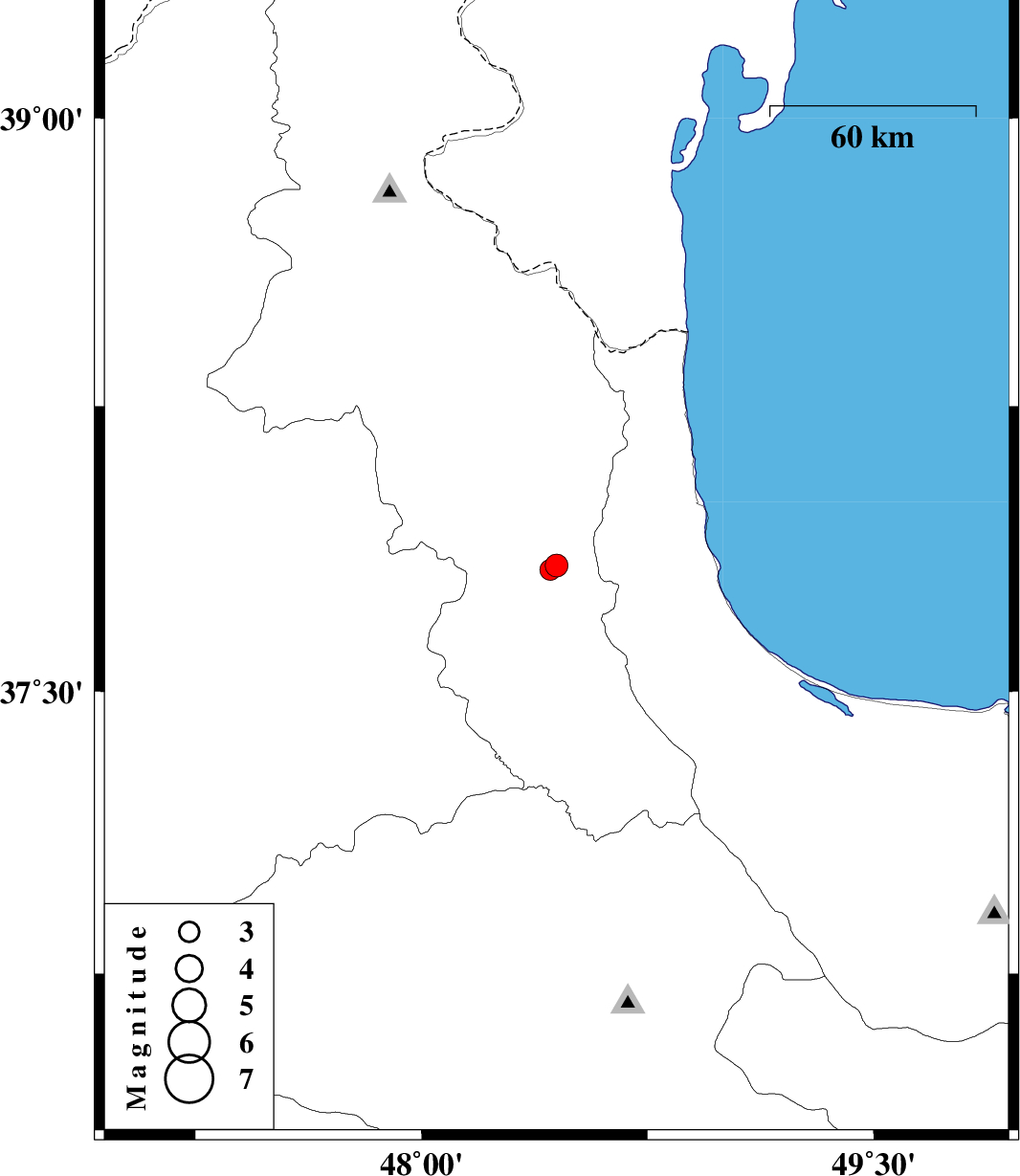 | 2017/07/12 | 21:42:04.7 | 02:12:04.7 | 37.821 | 48.427 | 15 | ML:3.1 | Ardebil Province, 14 km North of Givi |