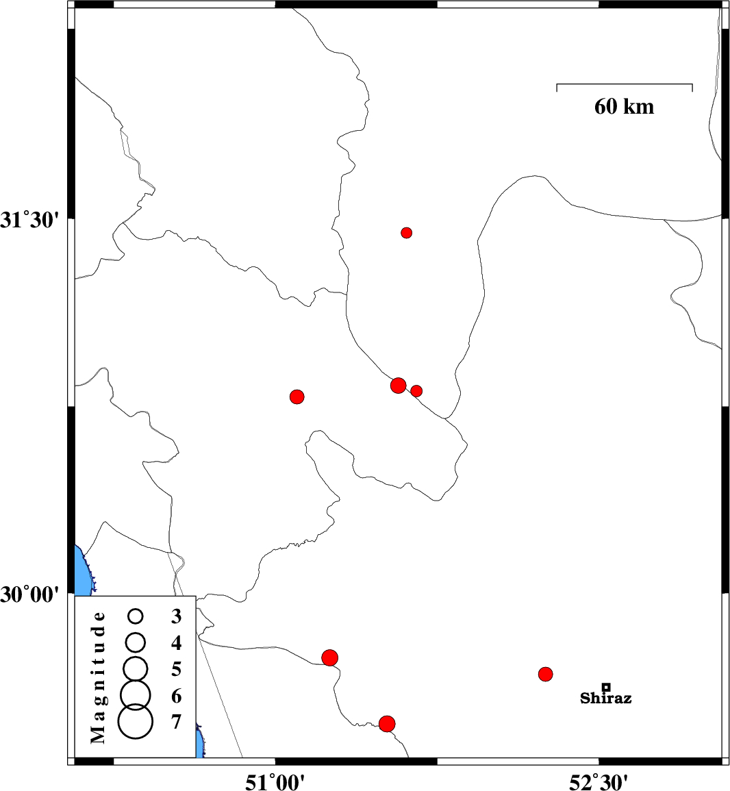 | 2017/07/15 | 00:00:22.1 | 04:30:22.1 | 29.672 | 52.252 | 14 | ML:3 | Fars Province, 28 km -West of Shiraz | ||