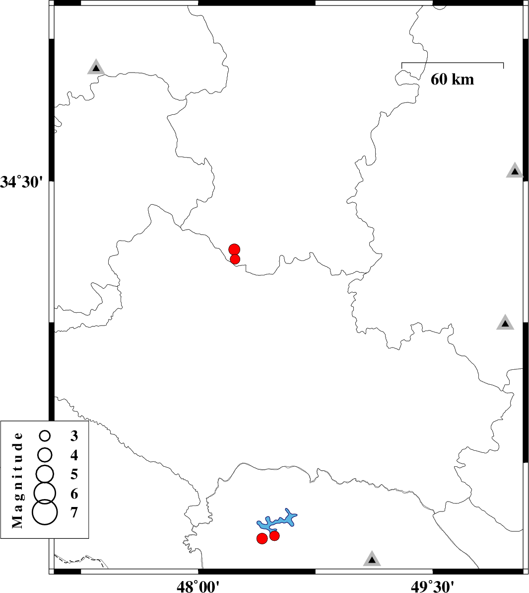 | 2017/07/12 | 09:42:23.8 | 14:12:23.8 | 33.977 | 48.573 | 14 | ML:3.2 | Lorestan Province, 19 km -West of Borujerd | ||