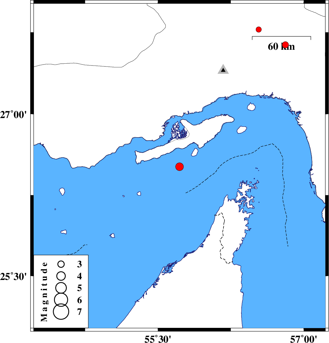 | 2017/08/06 | 09:24:39.6 | 13:54:39.6 | 26.513 | 55.722 | 23 | ML:3.6 | Persian Gulf, 87 km -East of Bandar-e lengeh | ||