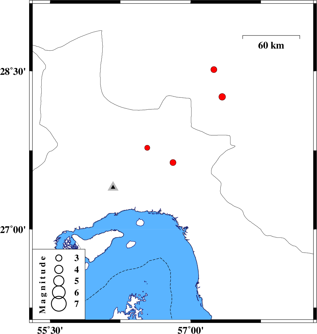 | 2017/08/01 | 06:58:10.3 | 11:28:10.3 | 27.775 | 56.536 | 21 | ML:2.6 | Hormozgan Province, 70 km North-East of Bandar-e abbas |