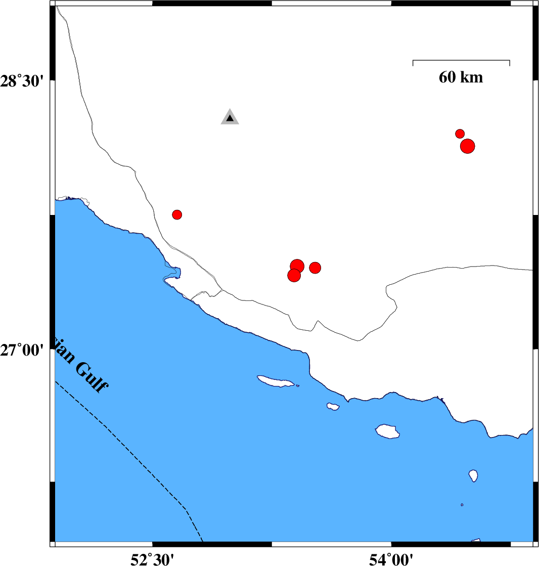 | 2017/08/10 | 13:50:15.3 | 18:20:15.3 | 27.464 | 53.409 | 15 | ML:3.9 | Fars Province, 28 km North-East of Lamerd | ||