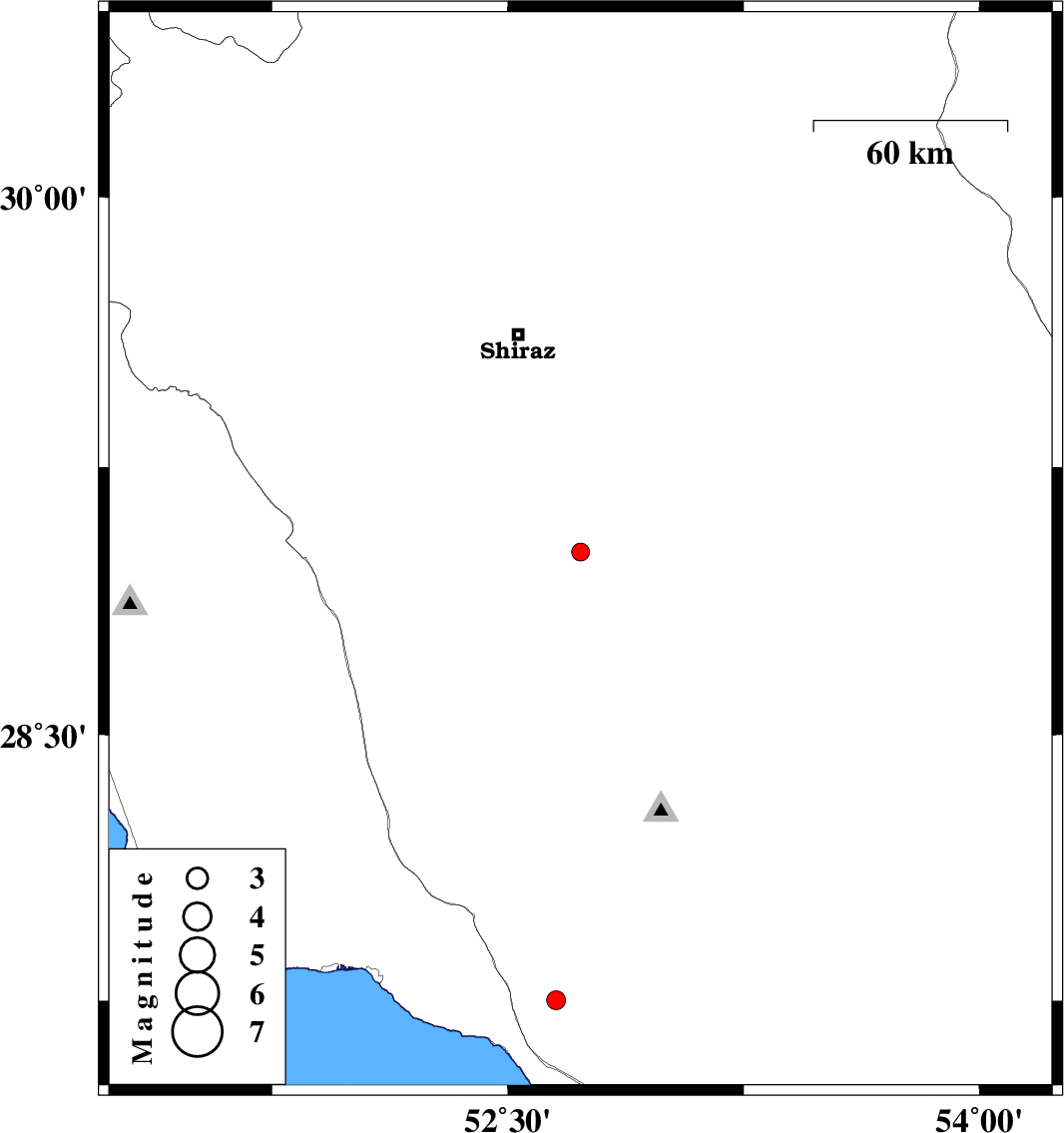 | 2017/08/11 | 00:59:02.8 | 05:29:02.8 | 27.752 | 52.654 | 14 | ML:2.7 | Fars Province, 34 km -East of Jam |