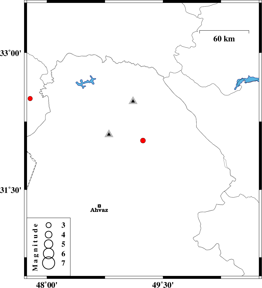 | 2017/08/20 | 02:08:17.1 | 06:38:17.1 | 32.042 | 49.241 | 15 | ML:2.9 | Khoozestan Province, 13 km North of Masjed Soleyman | ||