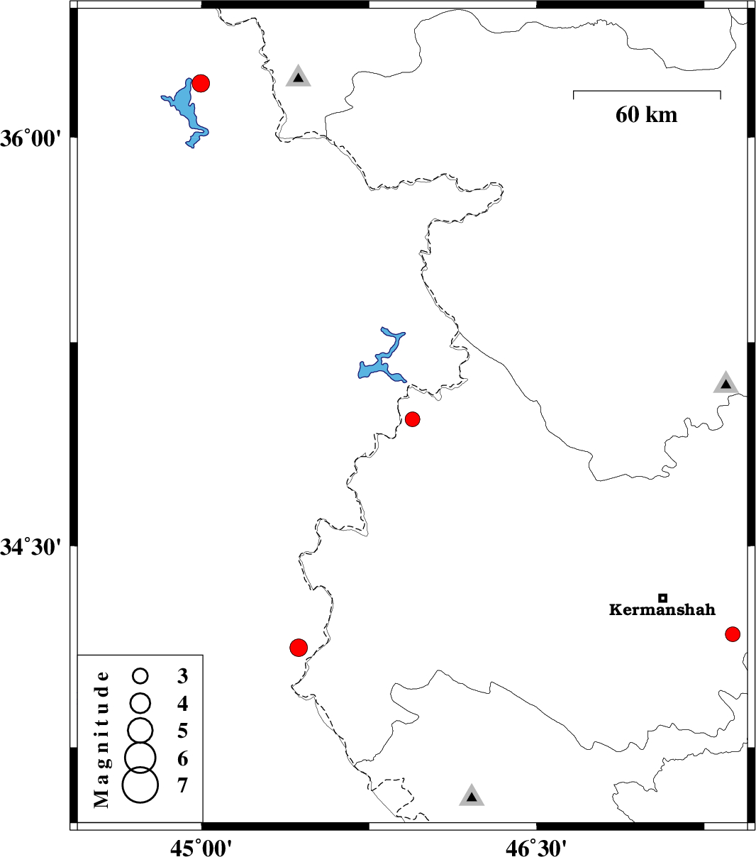 | 2017/07/27 | 20:10:32.2 | 00:40:32.2 | 34.172 | 47.378 | 14 | ML:2.9 | Kermanshah Province, 21 km -West of Harsin | ||