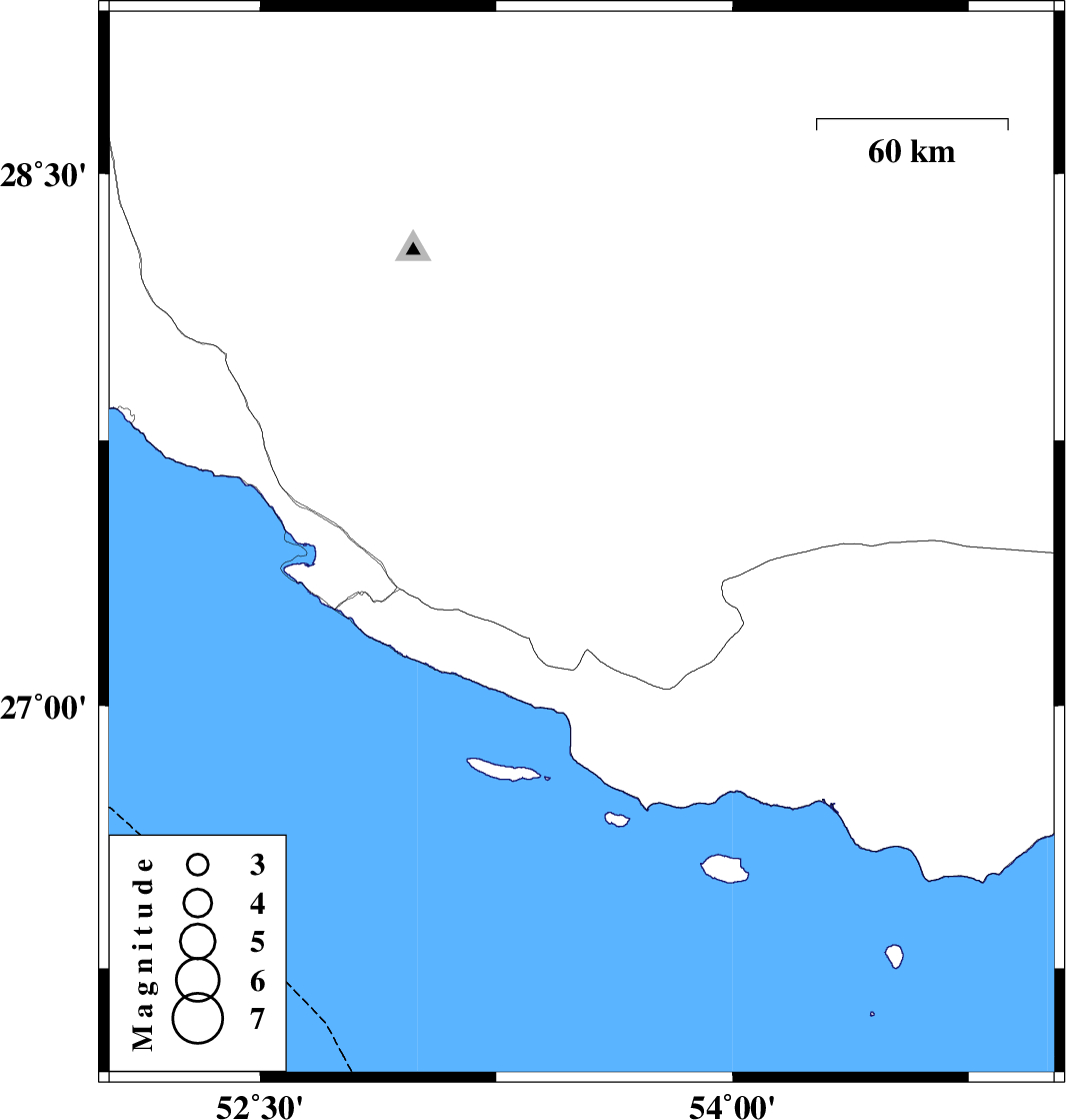 | 2017/08/09 | 19:02:37.5 | 23:32:37.5 | 27.455 | 53.521 | 15 | ML:3.2 | Fars Province, 37 km North-East of Lamerd |