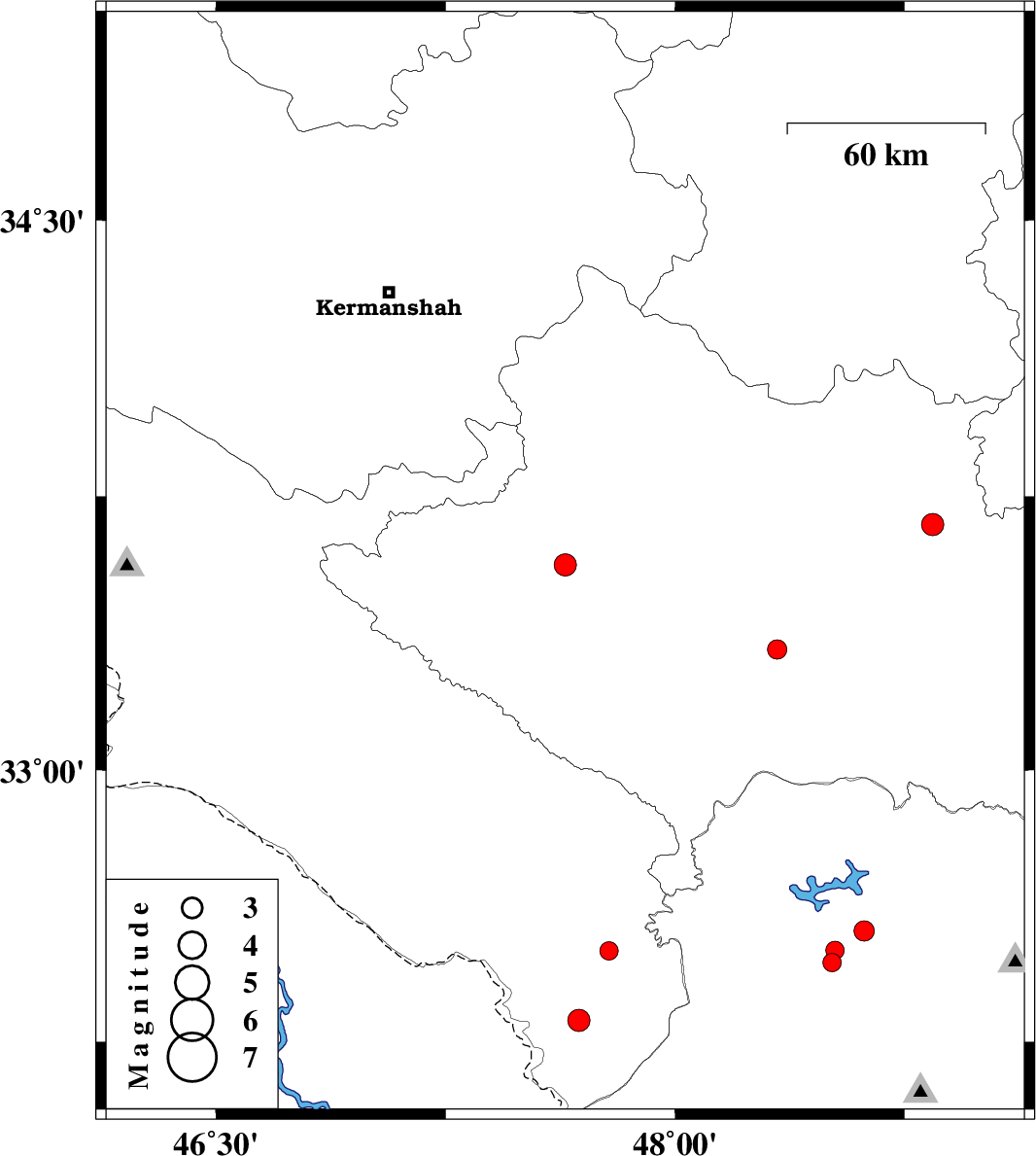 | 2017/08/31 | 09:32:52.7 | 14:02:52.7 | 32.309 | 47.685 | 15 | ML:3.2 | Ilam Province, 54 km North-West of Shush | ||
