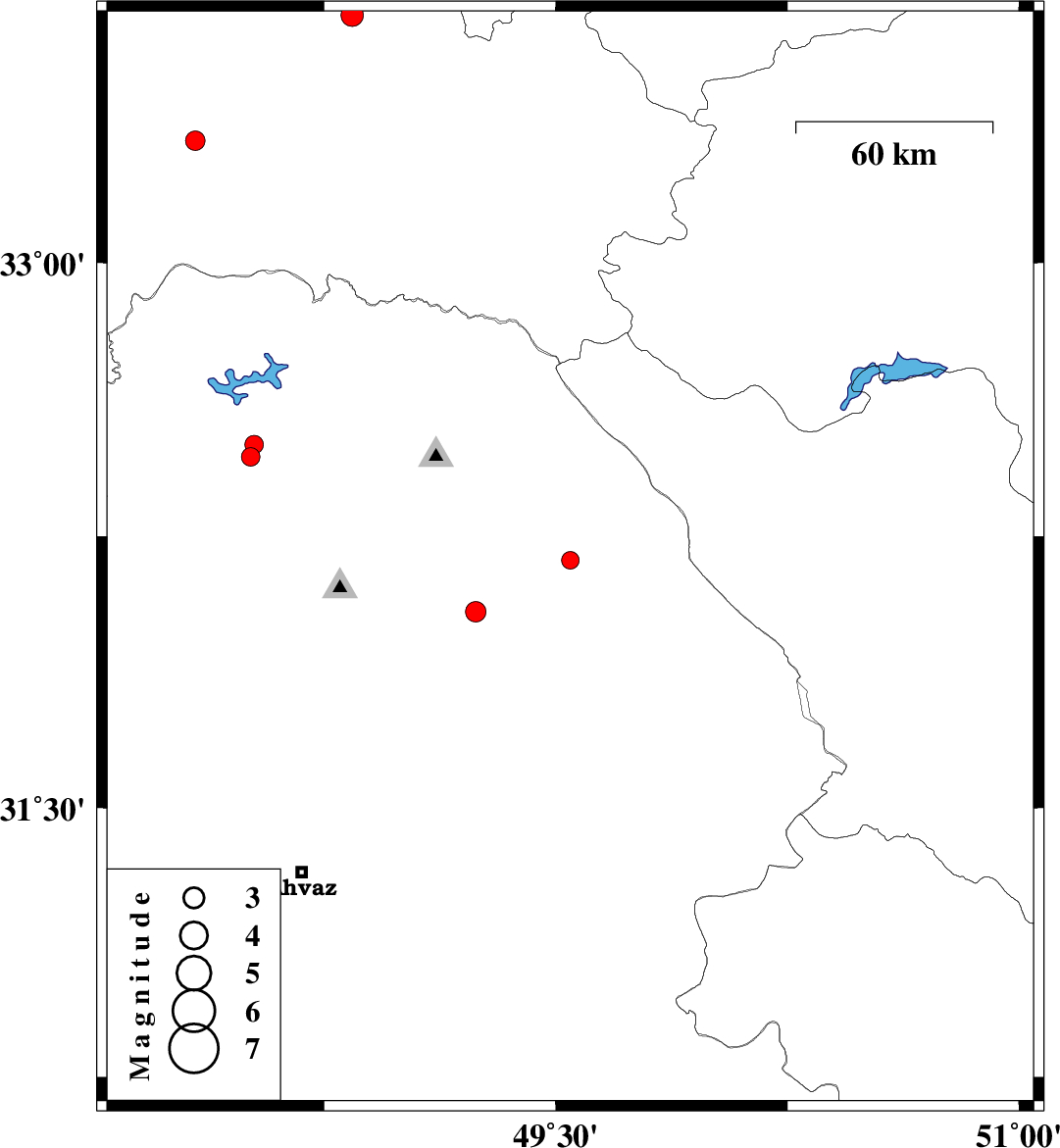 | 2017/09/05 | 16:54:42.3 | 21:24:42.3 | 32.184 | 49.547 | 14 | ML:2.5 | Khoozestan Province, 36 km North-East of Masjed Soleyman | ||