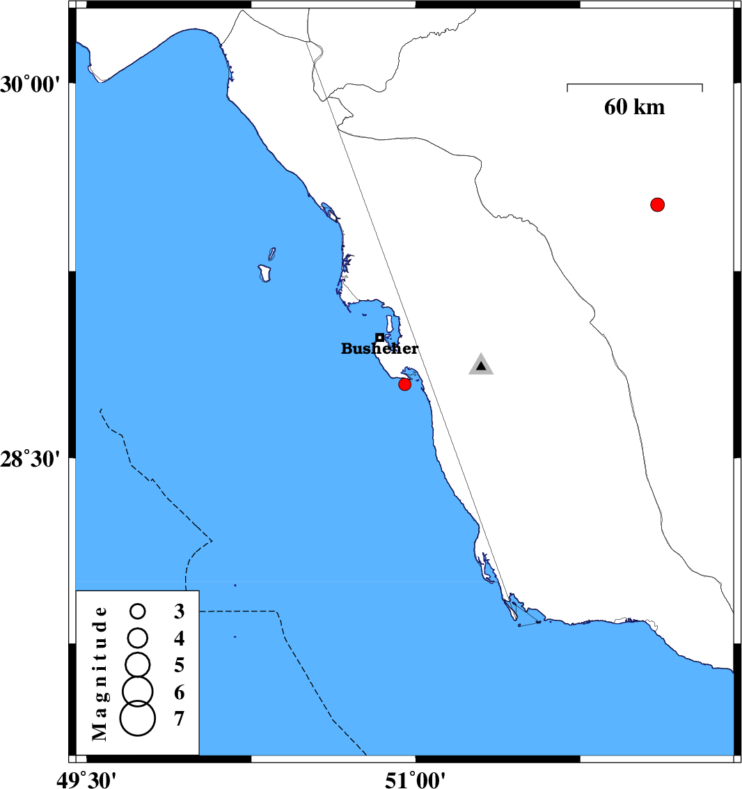 | 2017/09/21 | 01:28:28.9 | 05:58:28.9 | 28.796 | 50.95 | 6 | ML:2.5 | Persian Gulf, 24 km South-East of Busheher | ||