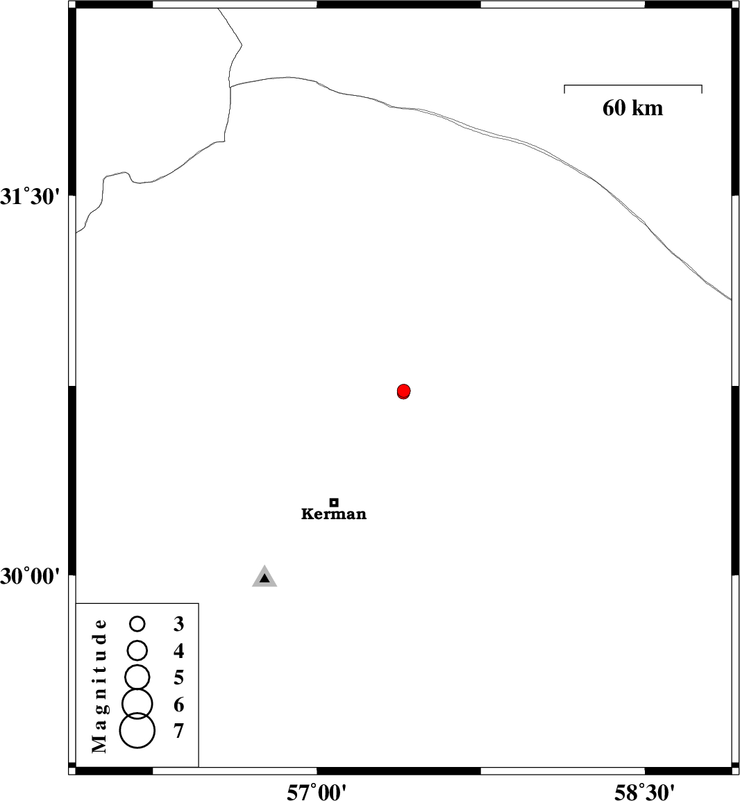 | 2017/09/30 | 19:04:22.8 | 22:34:22.8 | 30.722 | 57.395 | 14 | ML:2.5 | Kerman Province, 57 km North-East of Kerman |