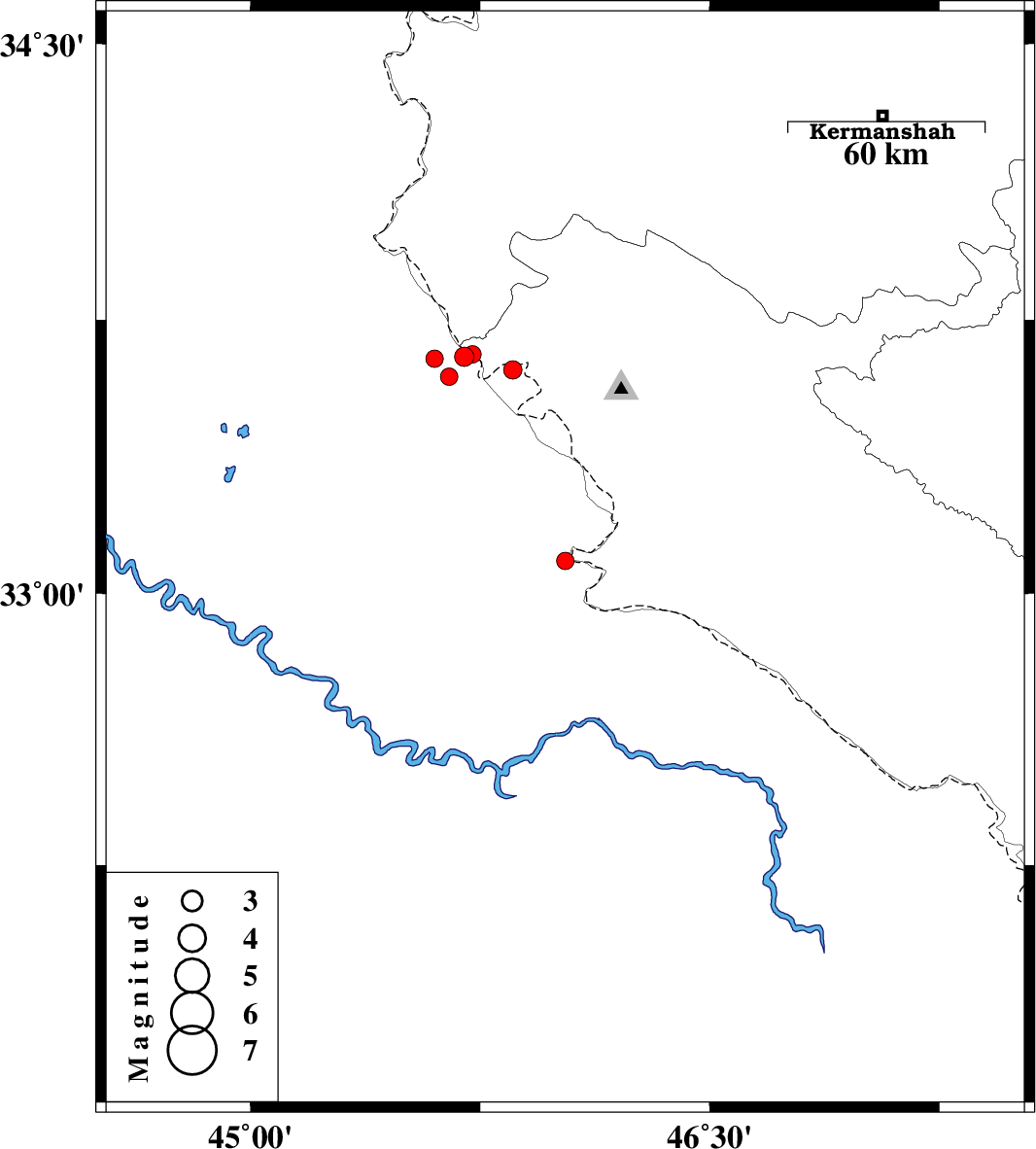 | 2017/10/05 | 13:13:14.4 | 16:43:14.4 | 33.649 | 45.698 | 7 | ML:2.8 | Iraq, 58 km South-West of Gilan-E-Gharb | ||