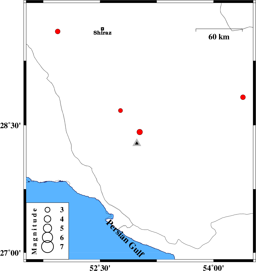 | 2017/10/06 | 04:16:58.0 | 07:46:58.0 | 29.589 | 51.94 | 15 | ML:3 | Fars Province, 28 km -East of Kazerun |