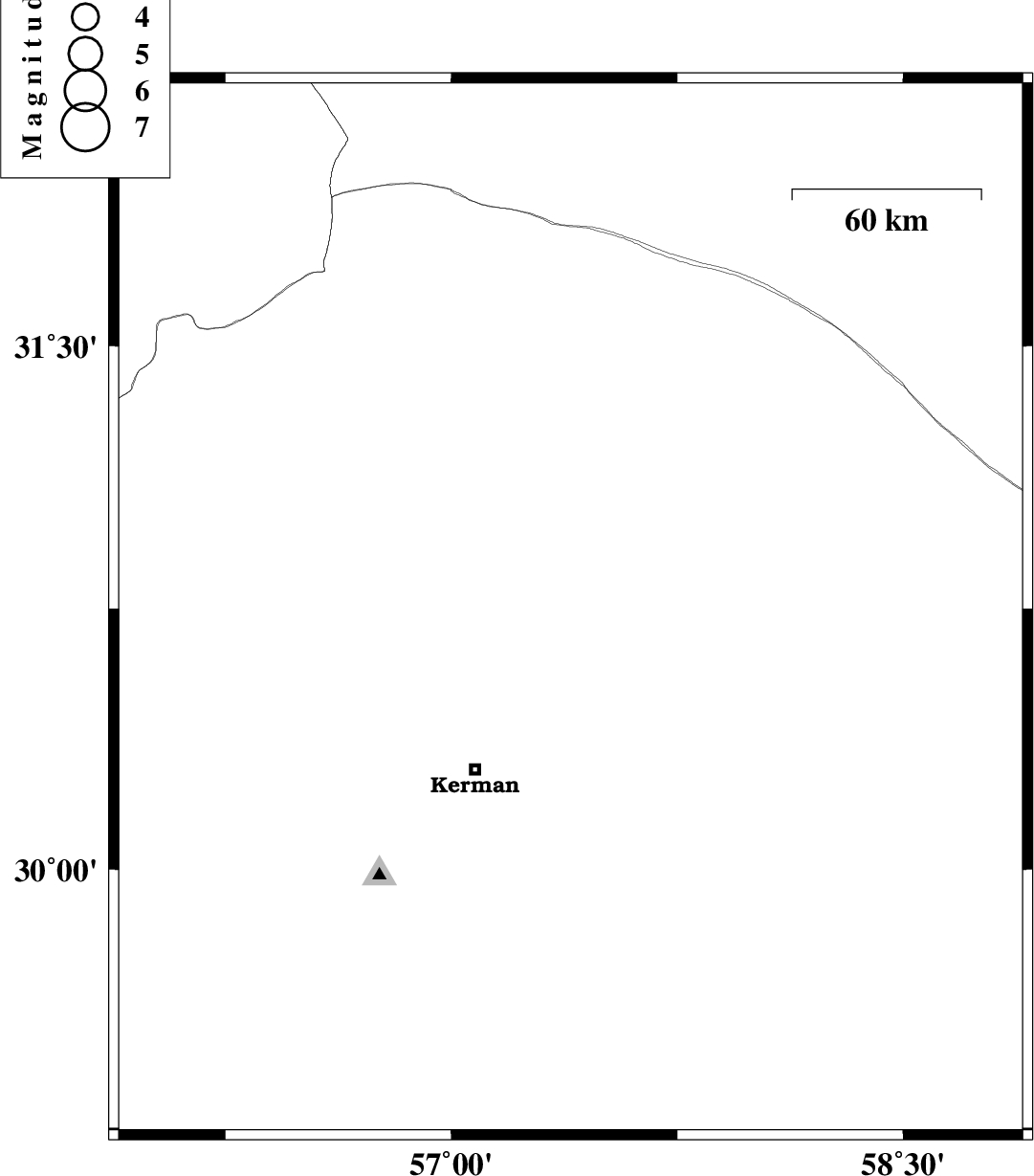 | 2017/10/14 | 03:43:34.3 | 07:13:34.3 | 30.72 | 57.391 | 14 | ML:2.8 | Kerman Province, 57 km North-East of Kerman | ||