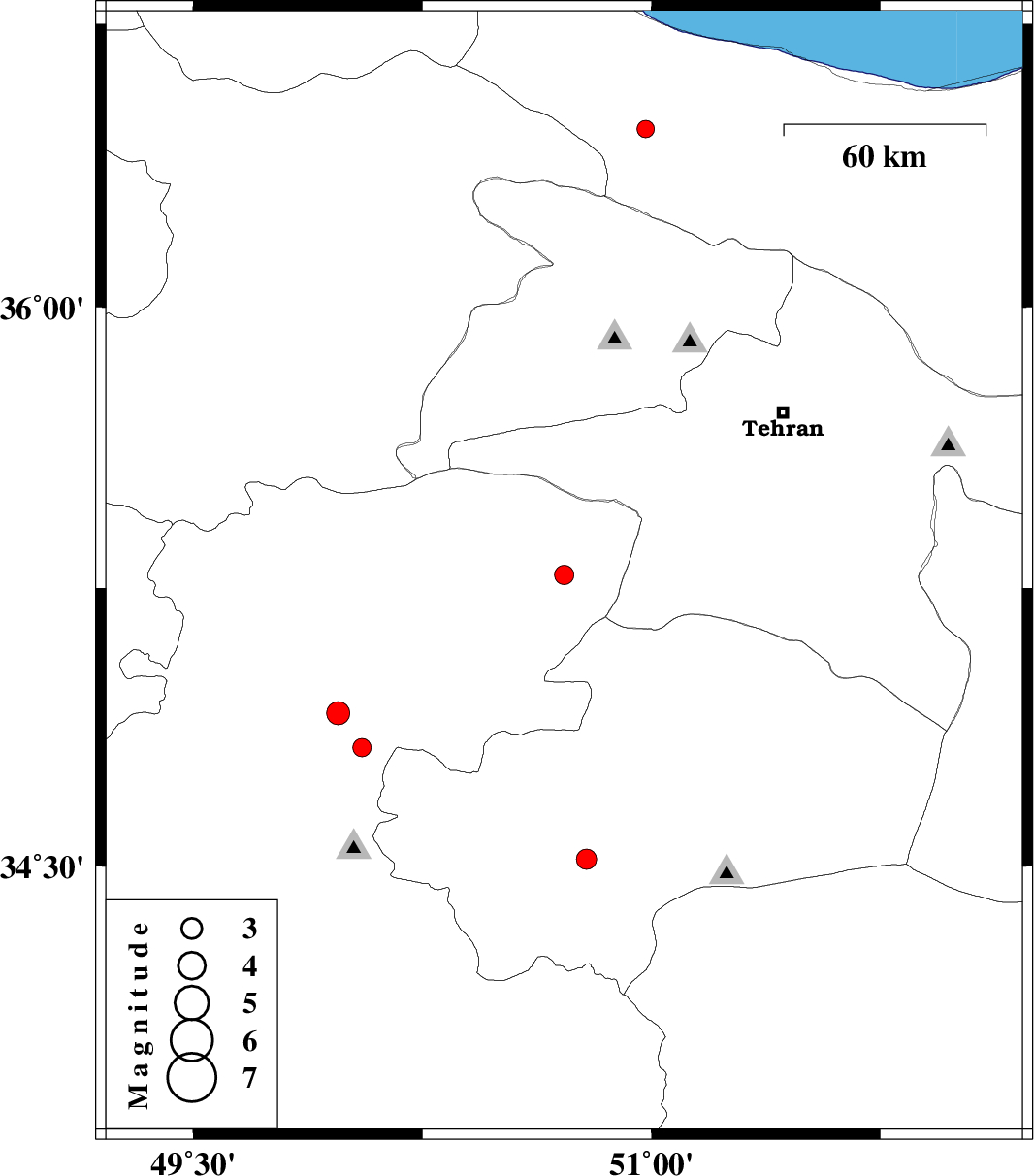 | 2017/10/20 | 20:25:04.8 | 23:55:04.8 | 35.285 | 50.714 | 15 | ML:2.8 | Markazi Province, 39 km South-West of Robatkarim | ||