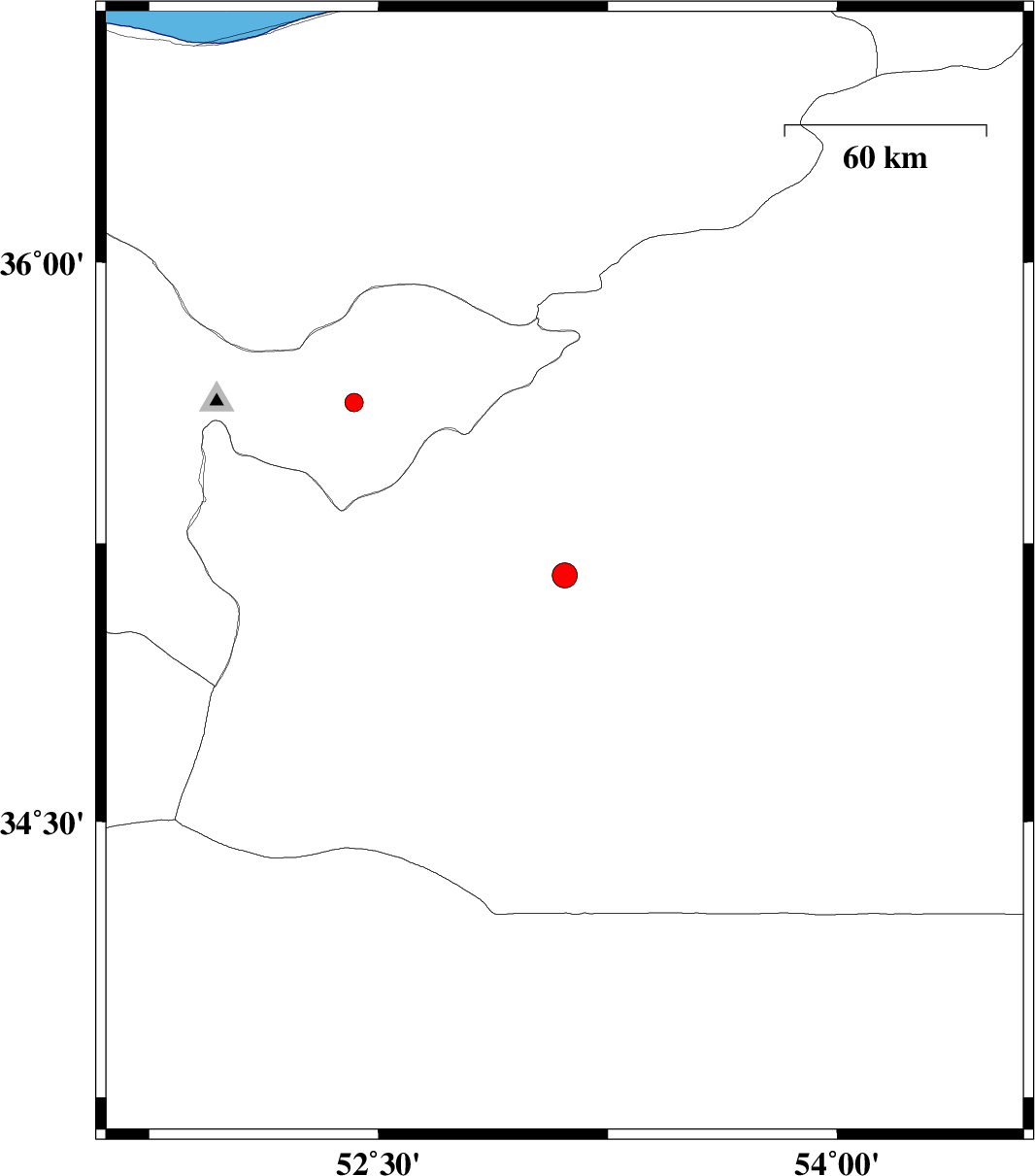 | 2017/10/21 | 23:00:53.8 | 02:30:53.8 | 35.164 | 53.109 | 15 | ML:3.7 | Semnan Province, 52 km South-West of Semnan | ||