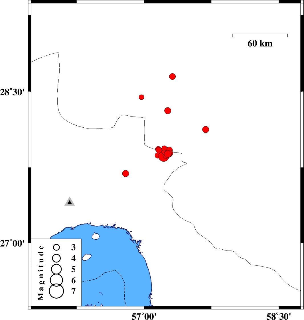 2017/10/23 02:05:37.9 05:35:37.9 27.9357.15714 ML:2.8 Kerman Province, 53 km -West of Kahnuj