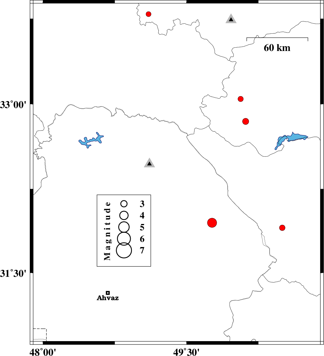 | 2017/10/14 | 14:15:44.2 | 17:45:44.2 | 32.185 | 49.451 | 14 | ML:3 | Khoozestan Province, 31 km North-East of Masjed Soleyman | ||