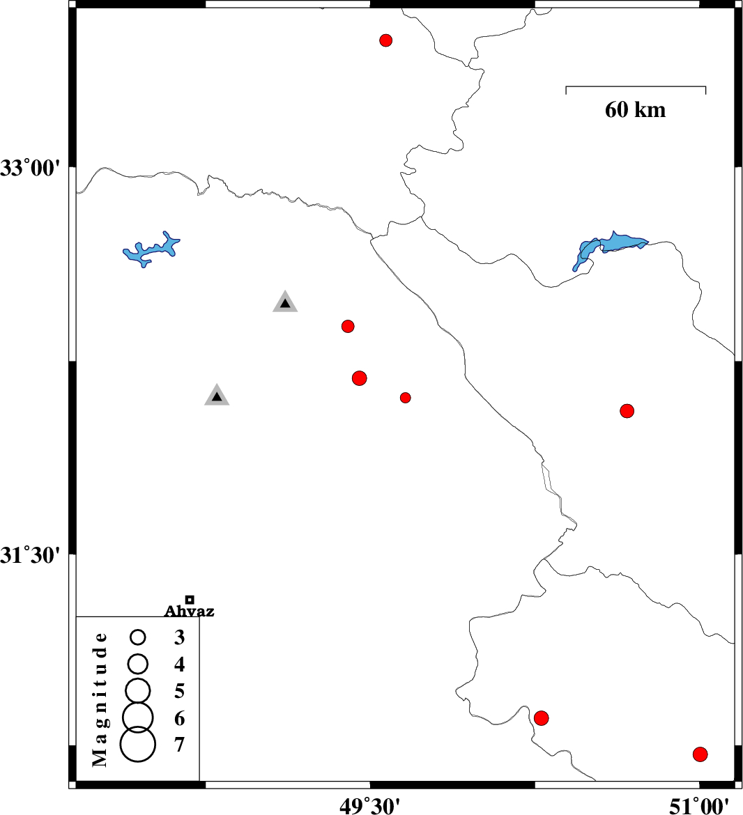| 2017/10/25 | 09:06:05.9 | 12:36:05.9 | 32.385 | 49.398 | 14 | ML:2.6 | Khoozestan Province, 27 km -East of Lali | ||
