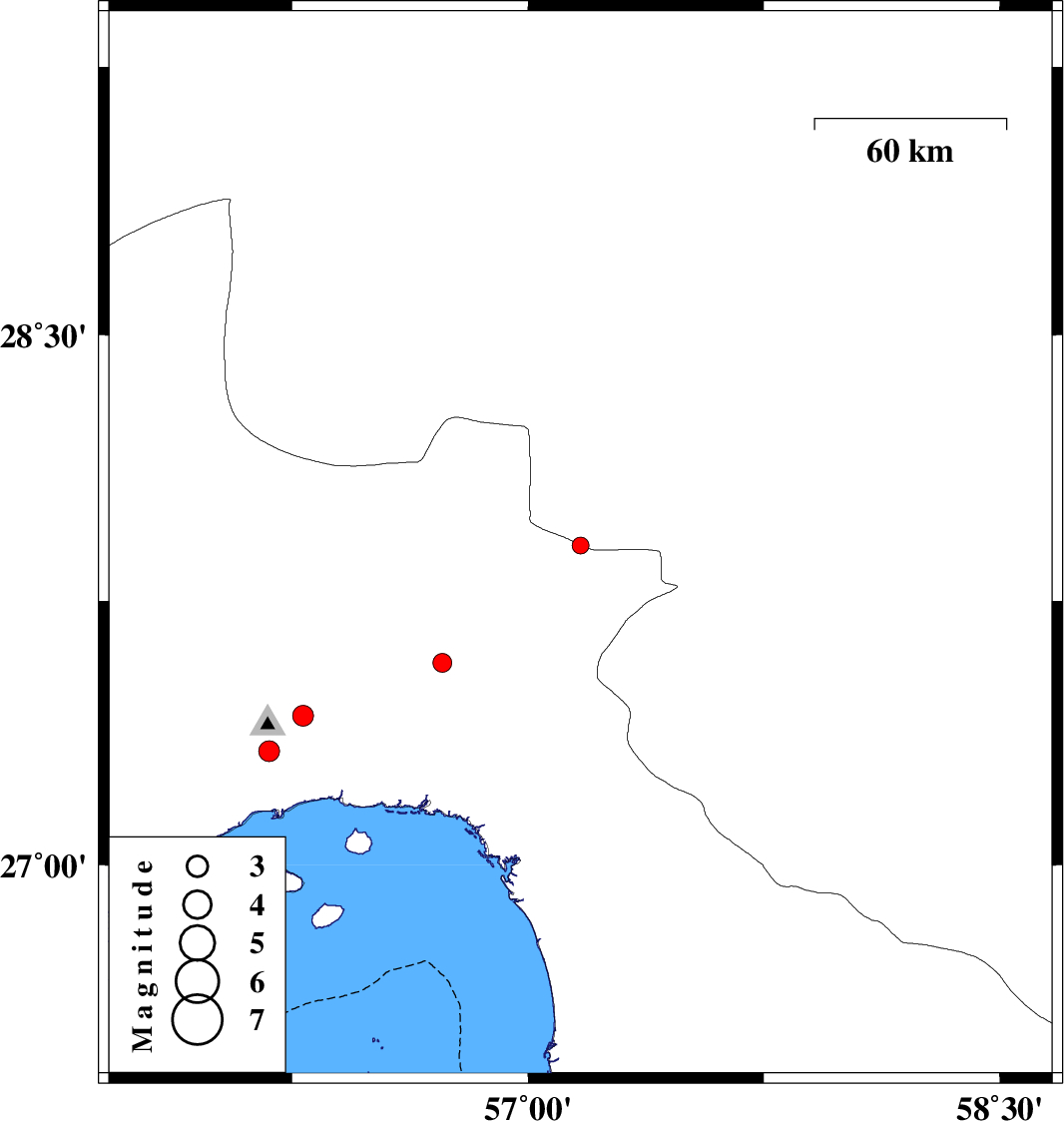 | 2017/11/06 | 17:14:42.4 | 20:44:42.4 | 27.324 | 56.176 | 14 | ML:3 | Hormozgan Province, 19 km North-West of Bandar-e abbas |