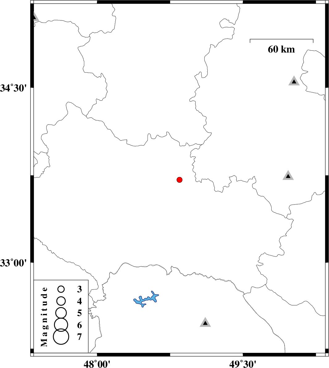 | 2017/11/08 | 20:33:44.7 | 00:03:44.7 | 33.712 | 48.847 | 15 | ML:2.5 | Lorestan Province, 22 km South of Borujerd | ||