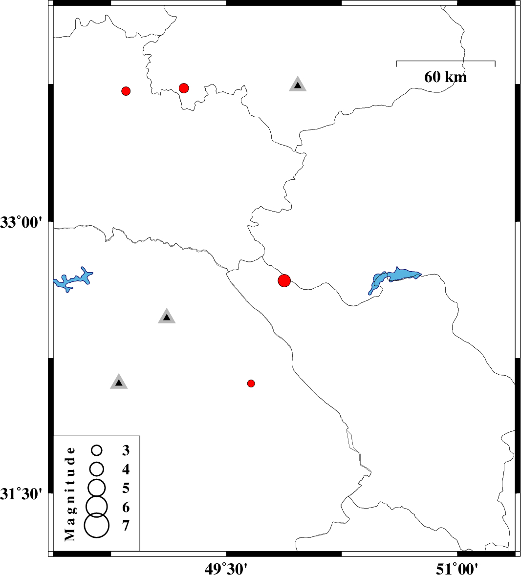 | 2017/11/08 | 20:33:44.7 | 00:03:44.7 | 33.712 | 48.847 | 15 | ML:2.5 | Lorestan Province, 22 km South of Borujerd | ||