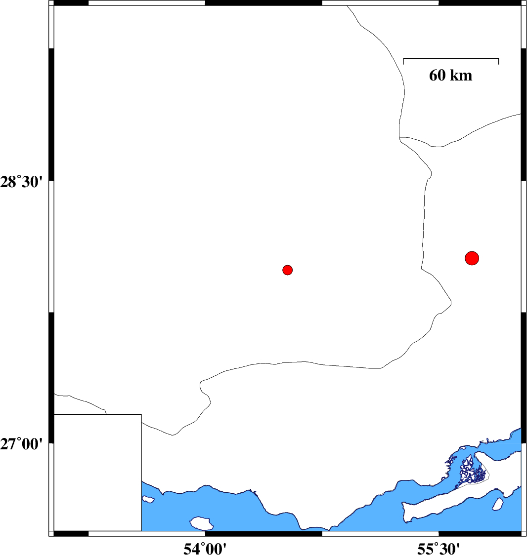 | 2017/11/23 | 02:47:23.8 | 06:17:23.8 | 28.06 | 55.712 | 16 | ML:3.9 | Hormozgan Province, 33 km South-West of Hajiabad |