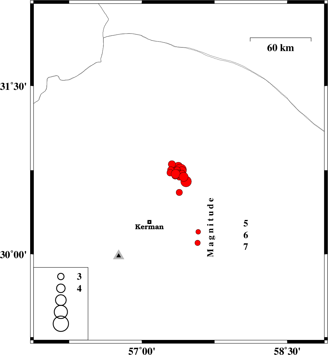 2017/12/01 03:35:00.5 07:05:00.5 30.75257.39916 ML:5.5 Kerman Province, 60 km North-East of Kerman