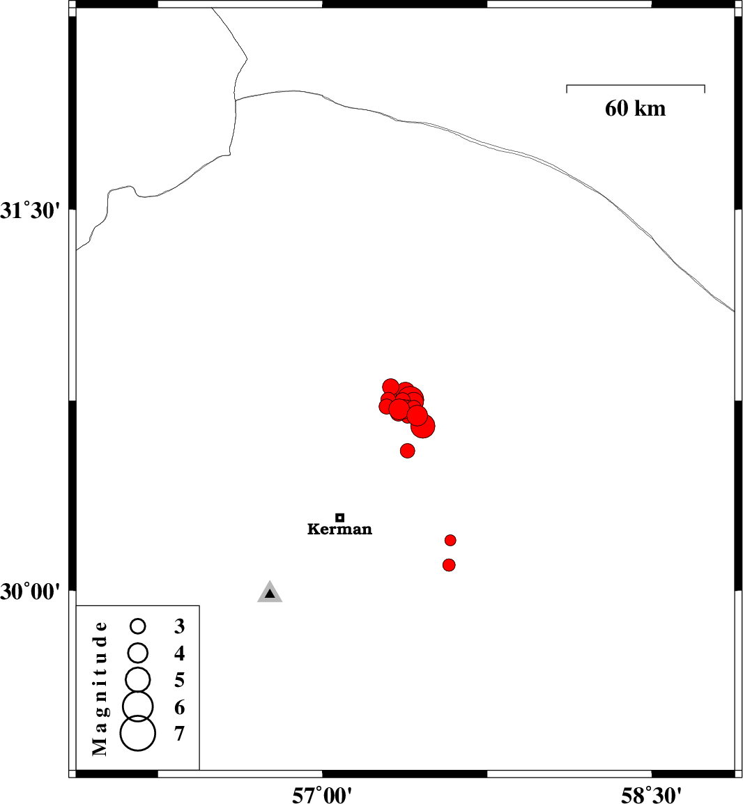 2017/12/01 03:35:00.5 07:05:00.5 30.75257.39916 ML:5.5 Kerman Province, 60 km North-East of Kerman