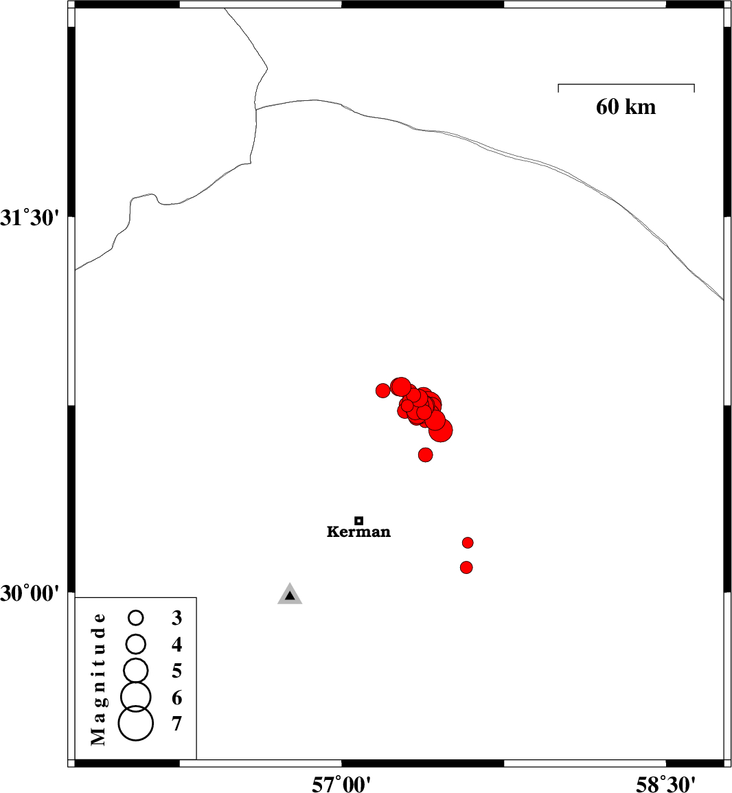 2017/12/02 10:50:40.4 14:20:40.4 30.75157.35615 ML:4.1 Kerman Province, 58 km North-East of Kerman
