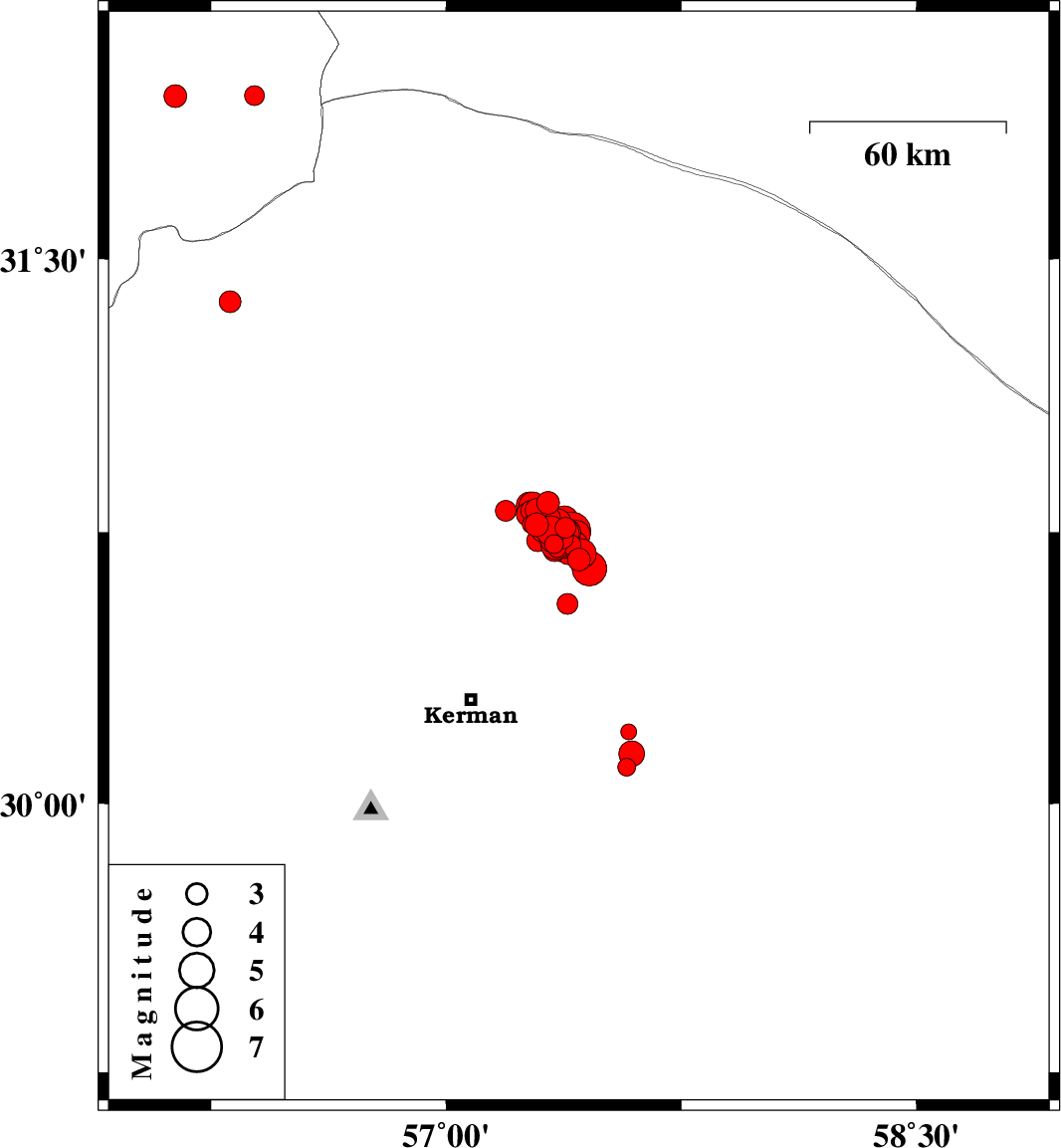 2017/12/01 03:35:00.5 07:05:00.5 30.75257.39916 ML:5.5 Kerman Province, 60 km North-East of Kerman