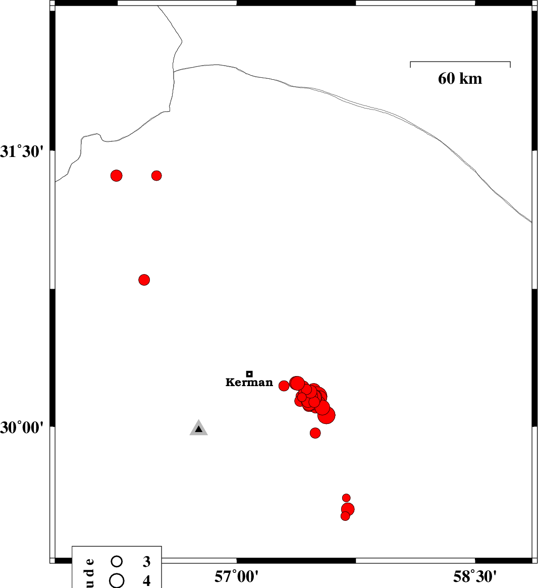 2017/12/02 10:50:40.4 14:20:40.4 30.75157.35615 ML:4.1 Kerman Province, 58 km North-East of Kerman
