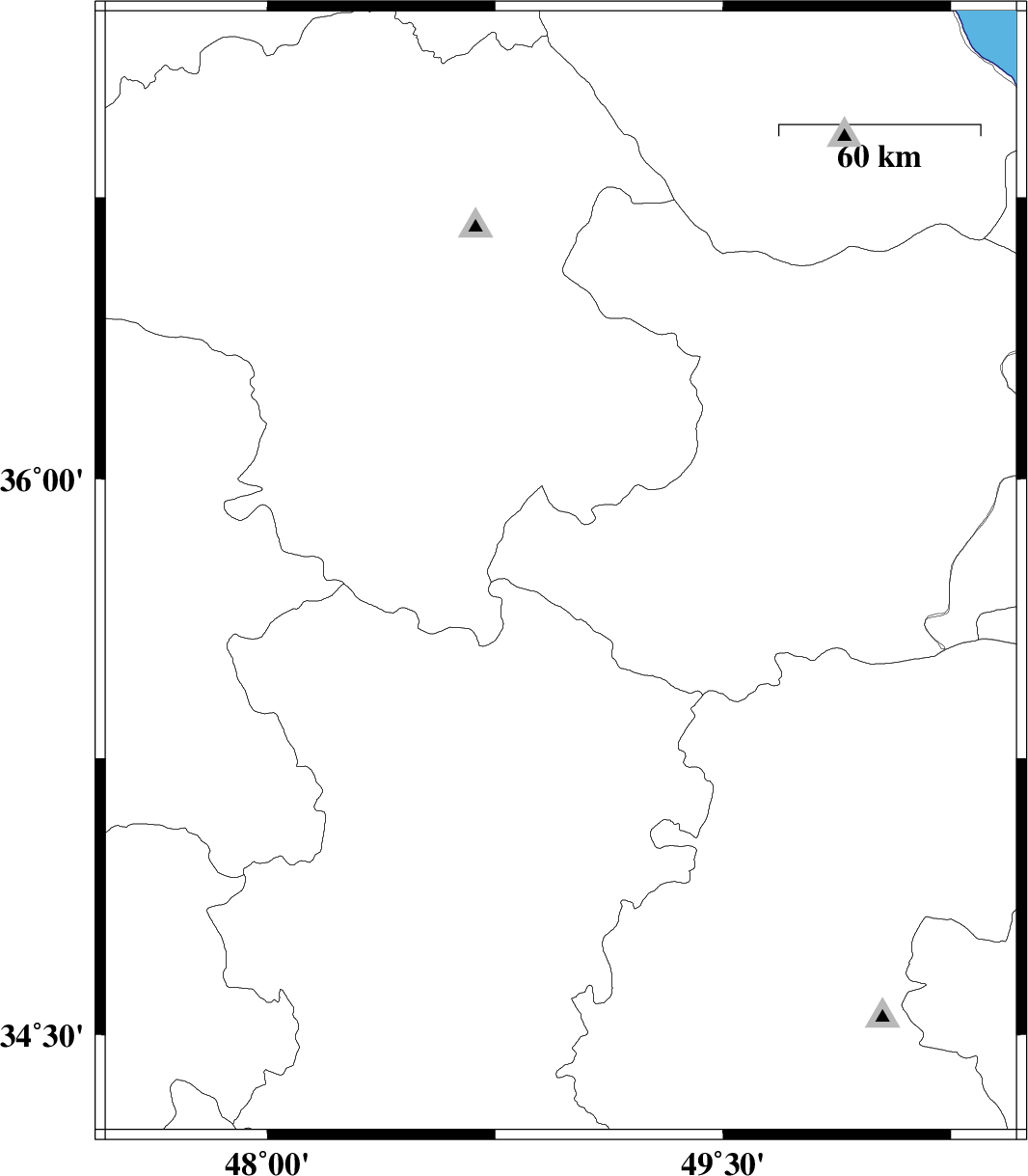 | 2017/12/03 | 23:42:59.8 | 03:12:59.8 | 35.735 | 48.95 | 15 | ML:2.2 | Ghazvin Province, 40 km North of Razan | ||