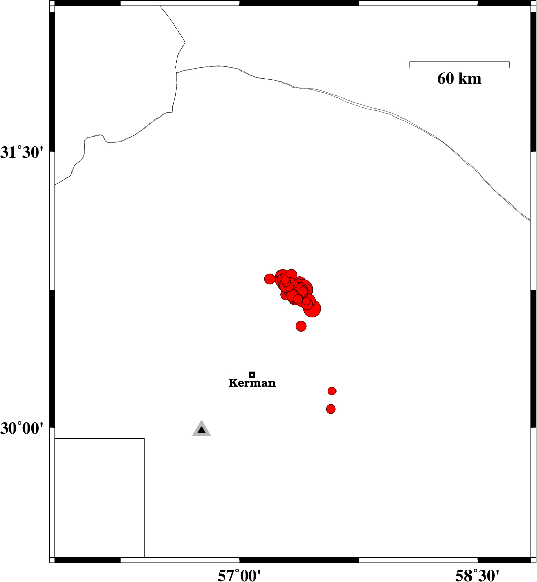 2017/12/01 03:35:00.5 07:05:00.5 30.75257.39916 ML:5.5 Kerman Province, 60 km North-East of Kerman