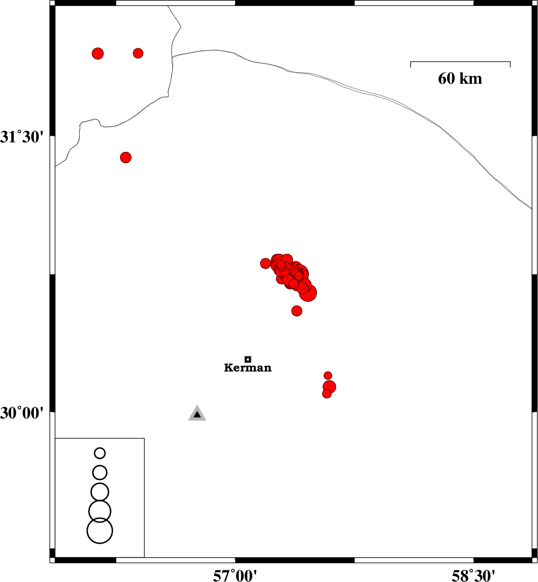 2017/12/02 10:50:40.4 14:20:40.4 30.75157.35615 ML:4.1 Kerman Province, 58 km North-East of Kerman