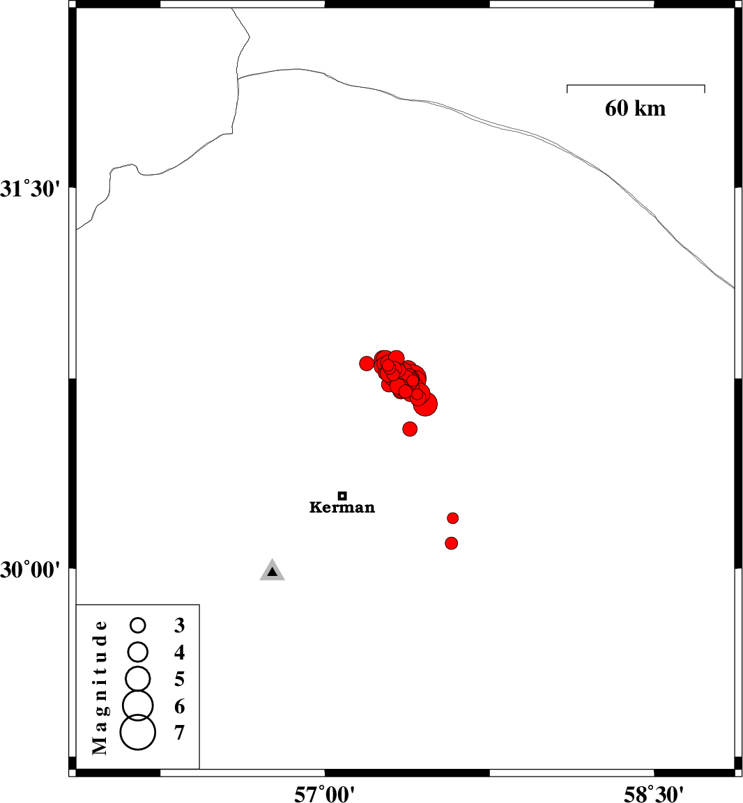 2017/12/04 02:50:05.5 06:20:05.5 30.70857.35118 ML:2.7 Kerman Province, 53 km North-East of Kerman