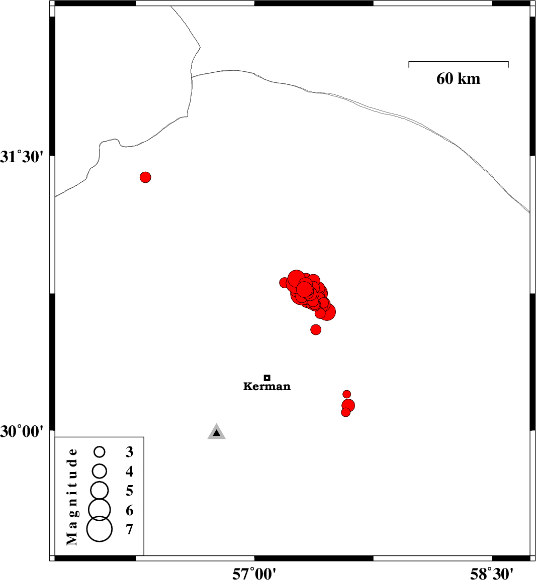 2017/12/02 10:50:40.4 14:20:40.4 30.75157.35615 ML:4.1 Kerman Province, 58 km North-East of Kerman