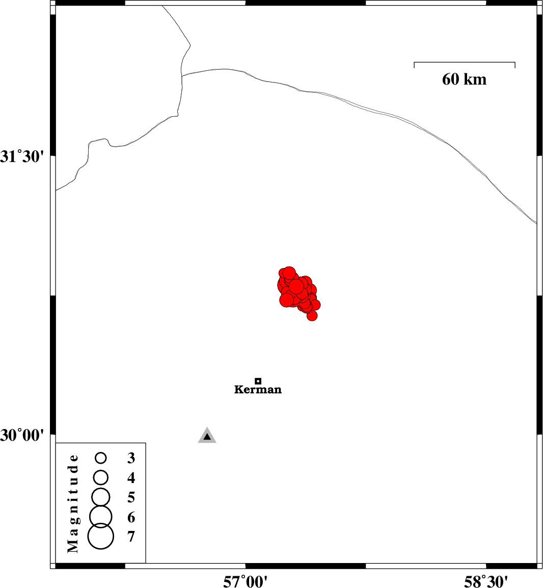 2017/12/12 08:55:17.4 12:25:17.4 30.75757.30516 ML:3.7 Kerman Province, 56 km North-East of Kerman