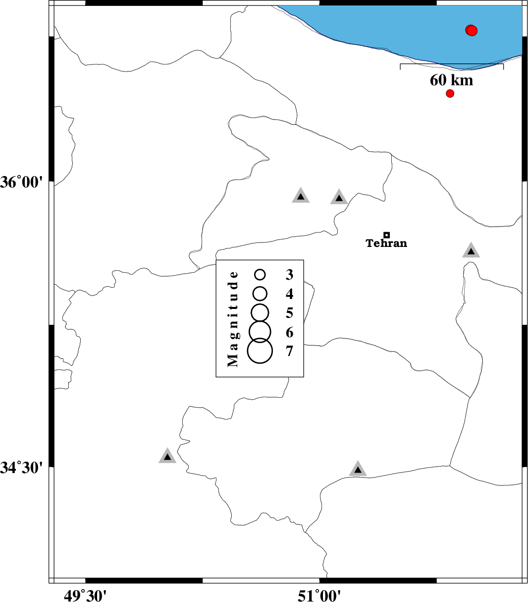 | 2017/12/12 | 19:48:55.1 | 23:18:55.1 | 35.741 | 50.93 | 14 | ML:2.9 | Tehran Province, 7 km of Karaj |