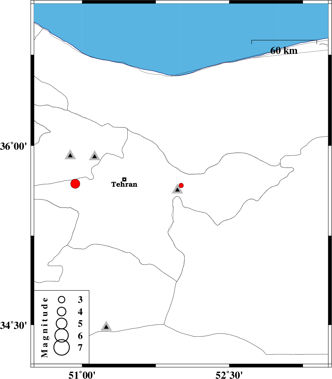 | 2017/12/26 | 21:24:34.2 | 00:54:34.2 | 35.684 | 50.93 | 15 | ML:4.2 | Tehran Province, 13 km South of Karaj |