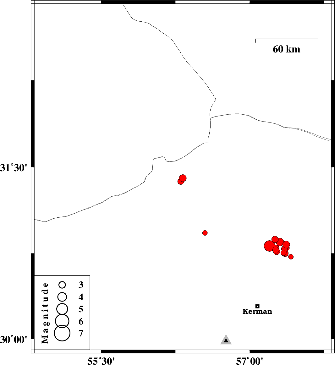 |  | 2017/12/27 | 10:13:09.7 | 13:43:09.7 | 30.751 | 57.357 | 14 | ML:2.9 | Kerman Province, 58 km North-East of Kerman |  |