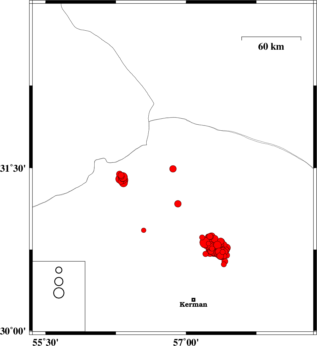 |  | 2018/01/06 | 07:20:04.2 | 10:50:04.2 | 30.692 | 57.365 | 14 | ML:3.3 | Kerman Province, 53 km North-East of Kerman |  |