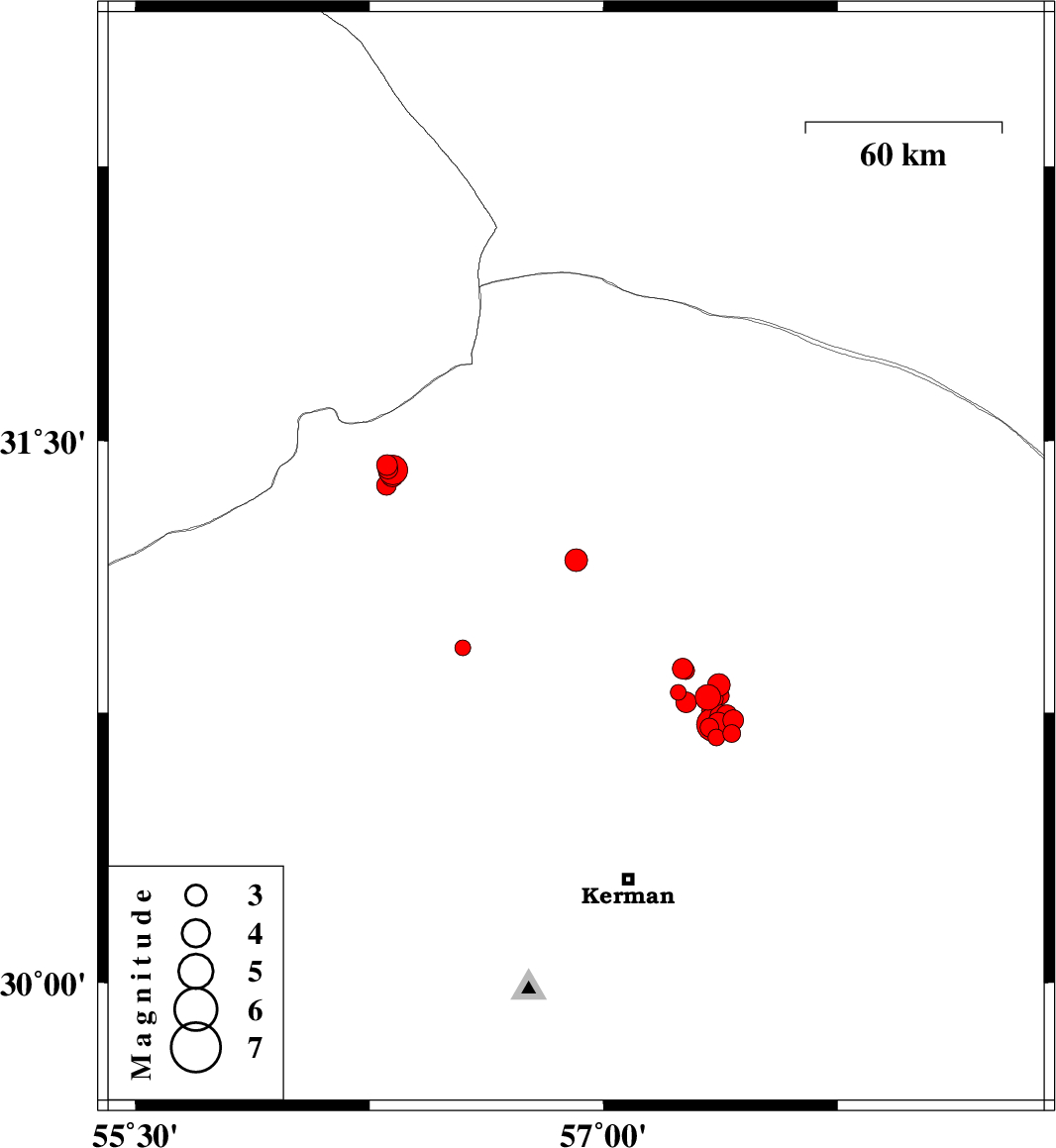 |  | 2017/12/30 | 07:43:16.9 | 11:13:16.9 | 30.779 | 57.264 | 14 | ML:2.9 | Kerman Province, 57 km North-East of Kerman |  |