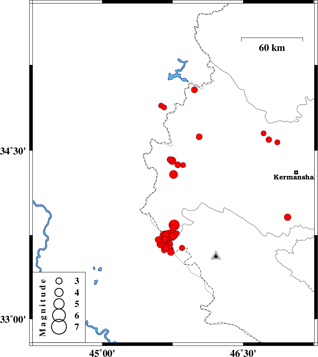 2018/01/11 | 07:00:59.8 | 10:30:59.8 | 33.838 | 45.766 | 15 | ML:5.1 | Kermanshah Province, 37 km South-West of Gilan-E-Gharb | ||
