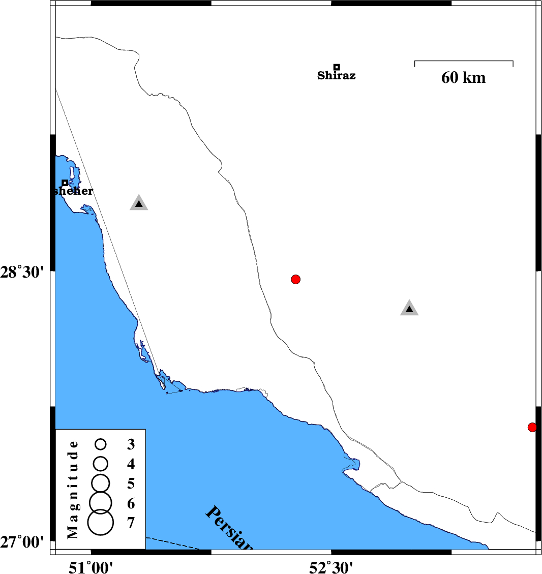 | 2018/01/19 | 18:44:06.5 | 22:14:06.5 | 28.453 | 52.277 | 18 | ML:2.6 | Fars Province, 50 km South-East of Farashband | ||